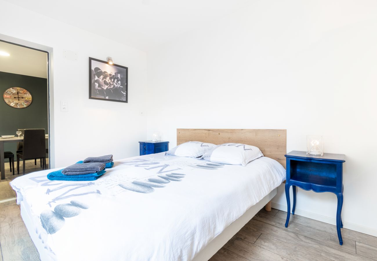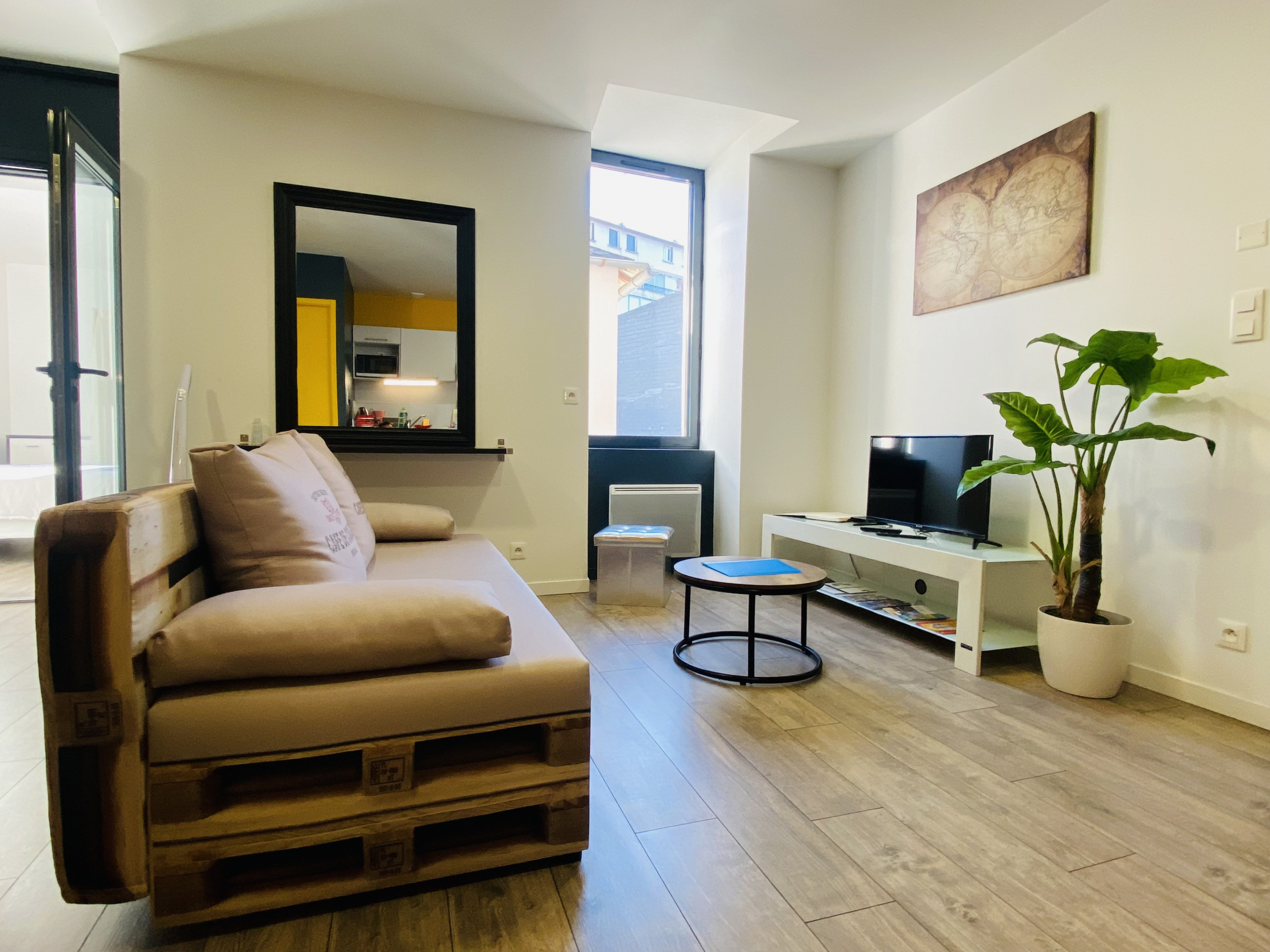 The apartment is located on the ground floor, close to the city centre of RODEZ. It consists of an entrance, an equipped kitchen area adjacent to the living room, a separate bedroom area (with a 140 cm bed) and a bathroom with toilet.