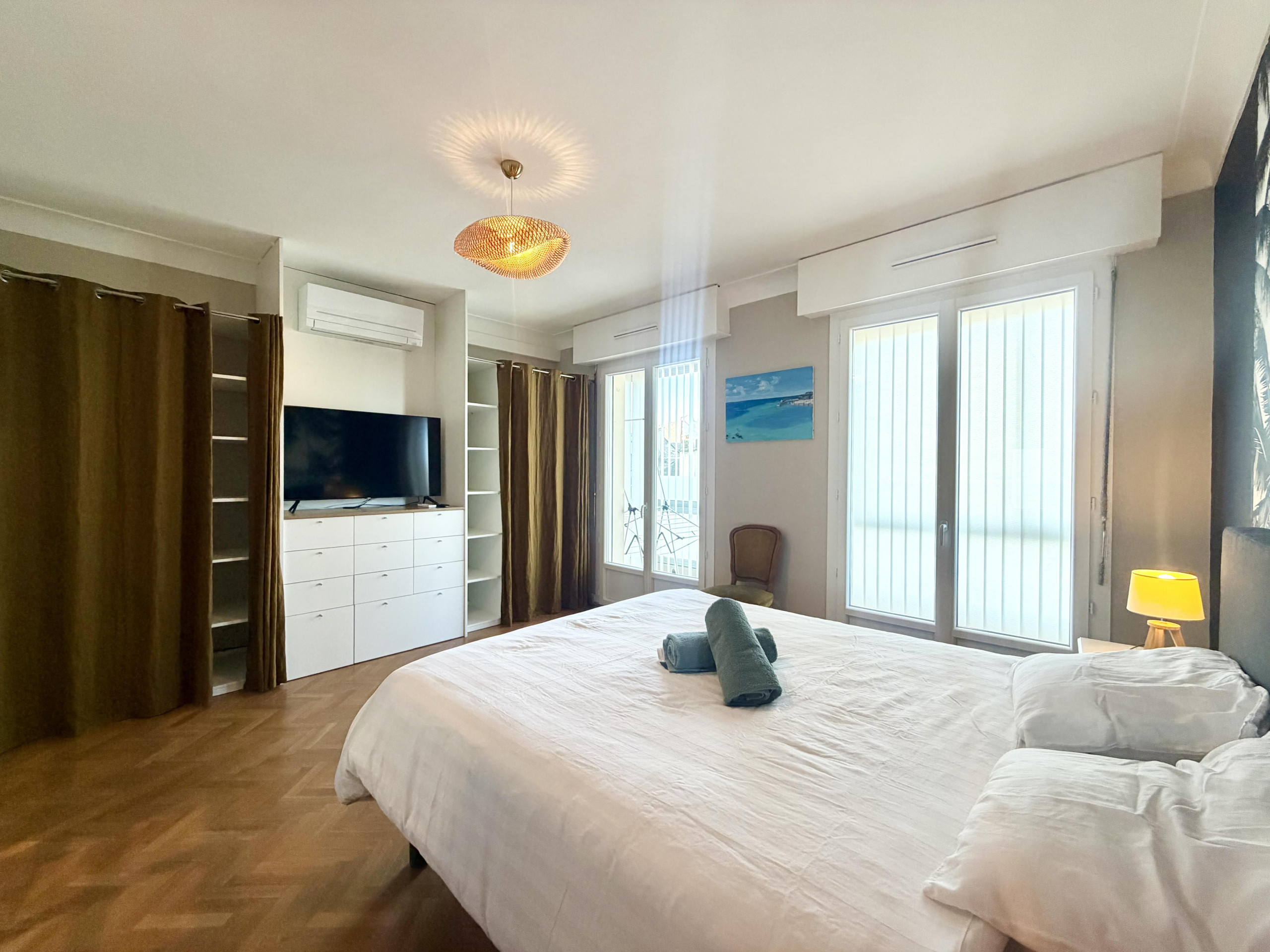 - Una habitación espaciosa con cama Queen size (160x200), ropa de cama de calidad y almacenamiento