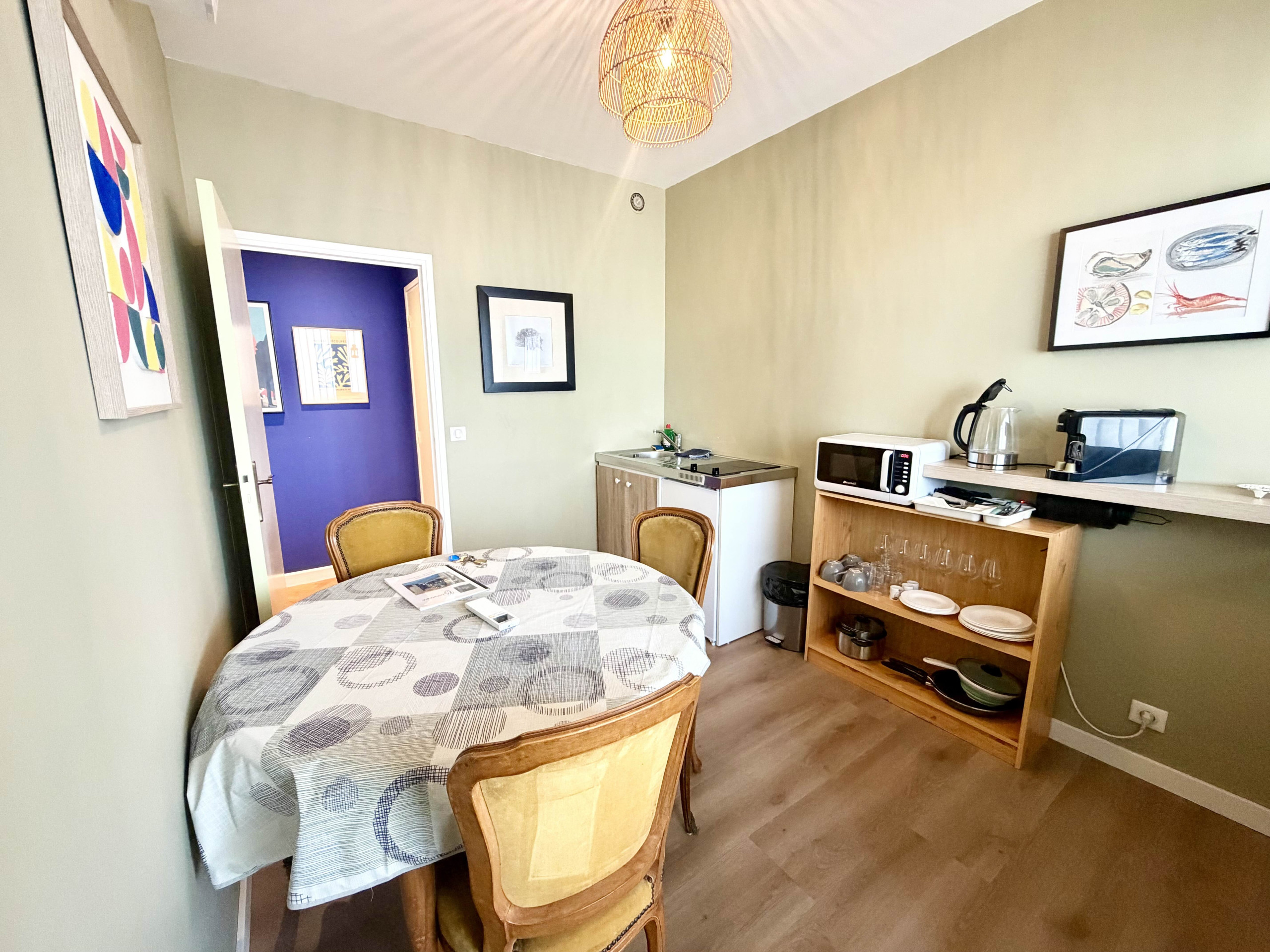 - Un espacio de cocina con kitchenette equipada (placas, refrigerador, microondas, cafetera, vajilla...) para preparar sus comidas