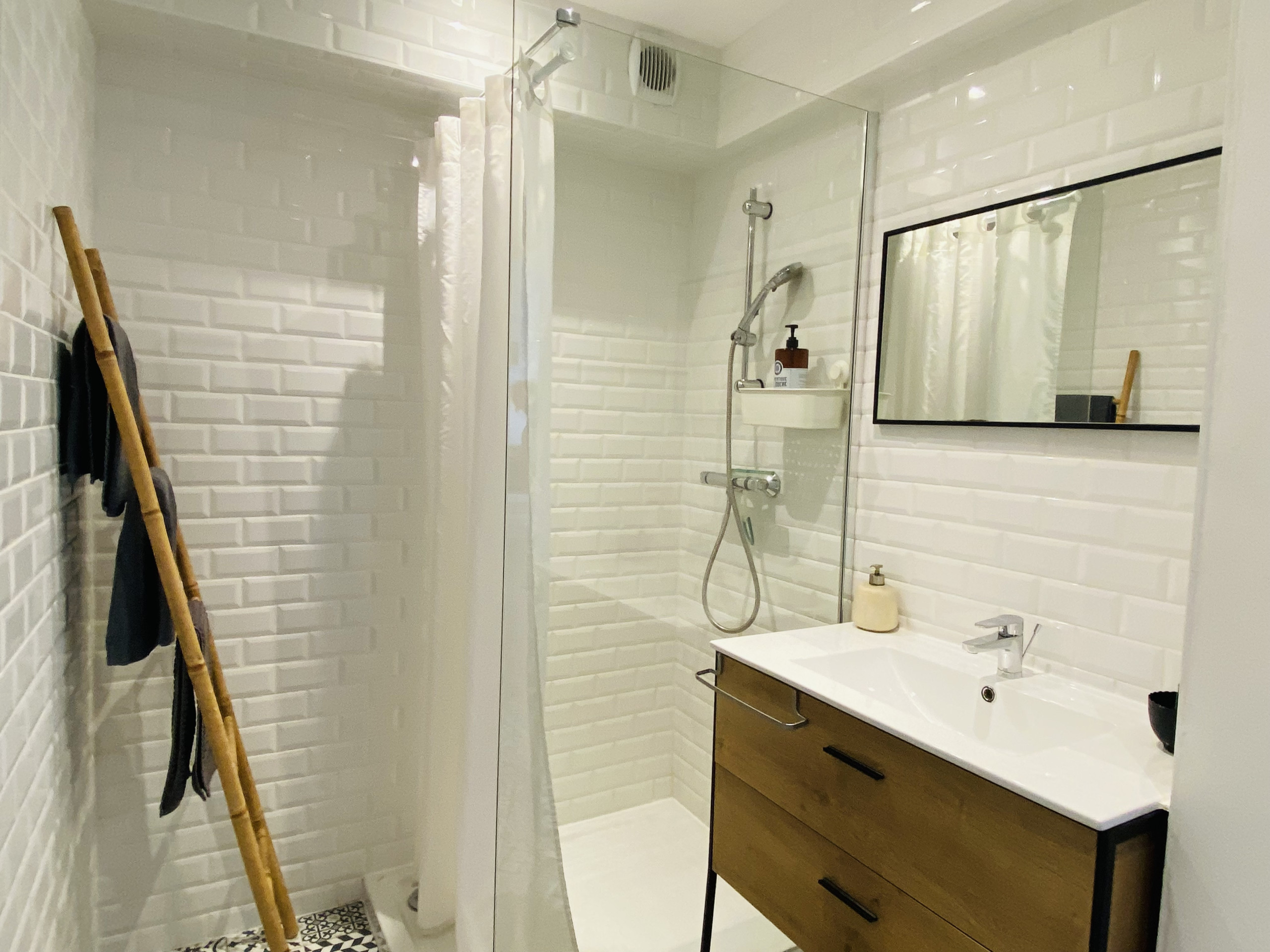 - Une salle de bain moderne, lave-linge à disposition.